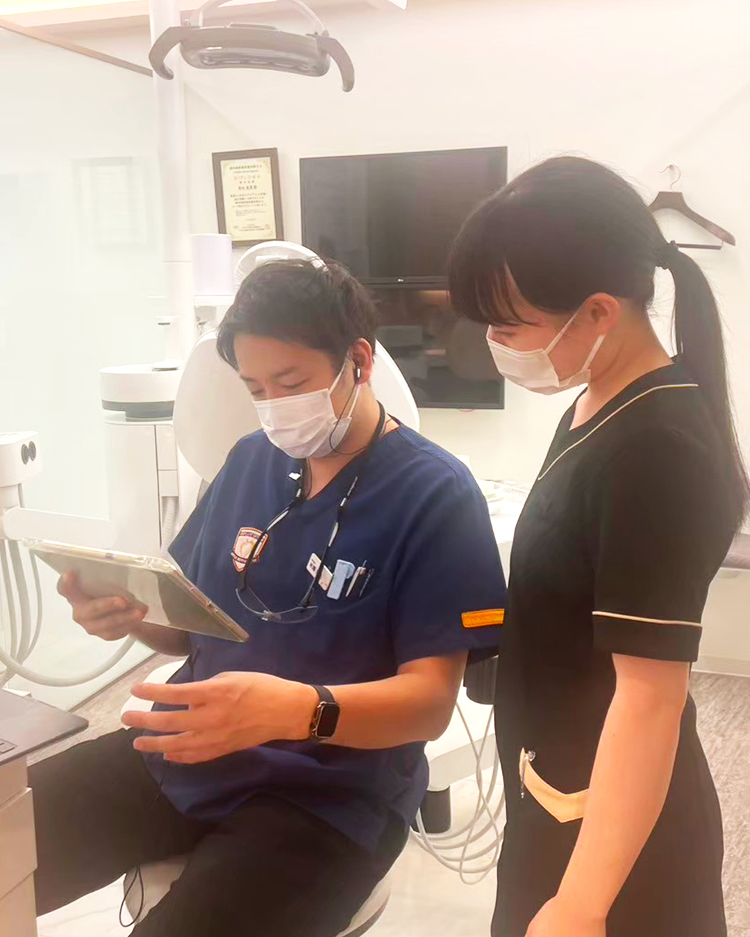 衛生士さんと患者様のアポイントを調整中。